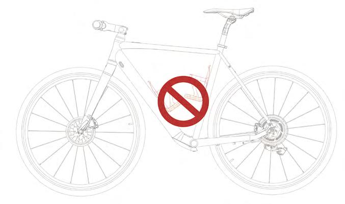 El Range Extender debe ser instalado usando el portabidón específico de Ebikemotion incluído con la unidad. La instalación del Range Extender en la bicicleta debe ser siempre en el tubo de sillín del cuadro. La unidad no es compatible con montajes en el tubo diagonal.