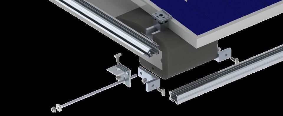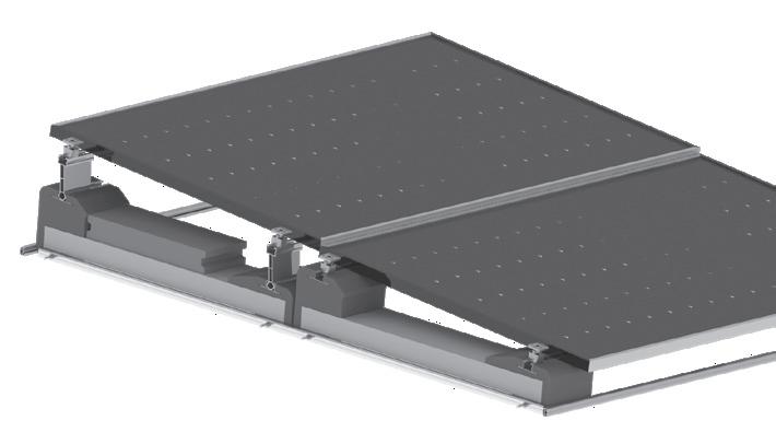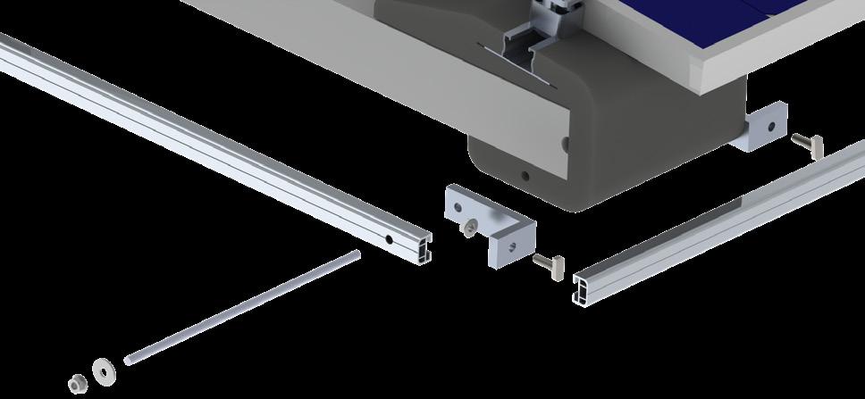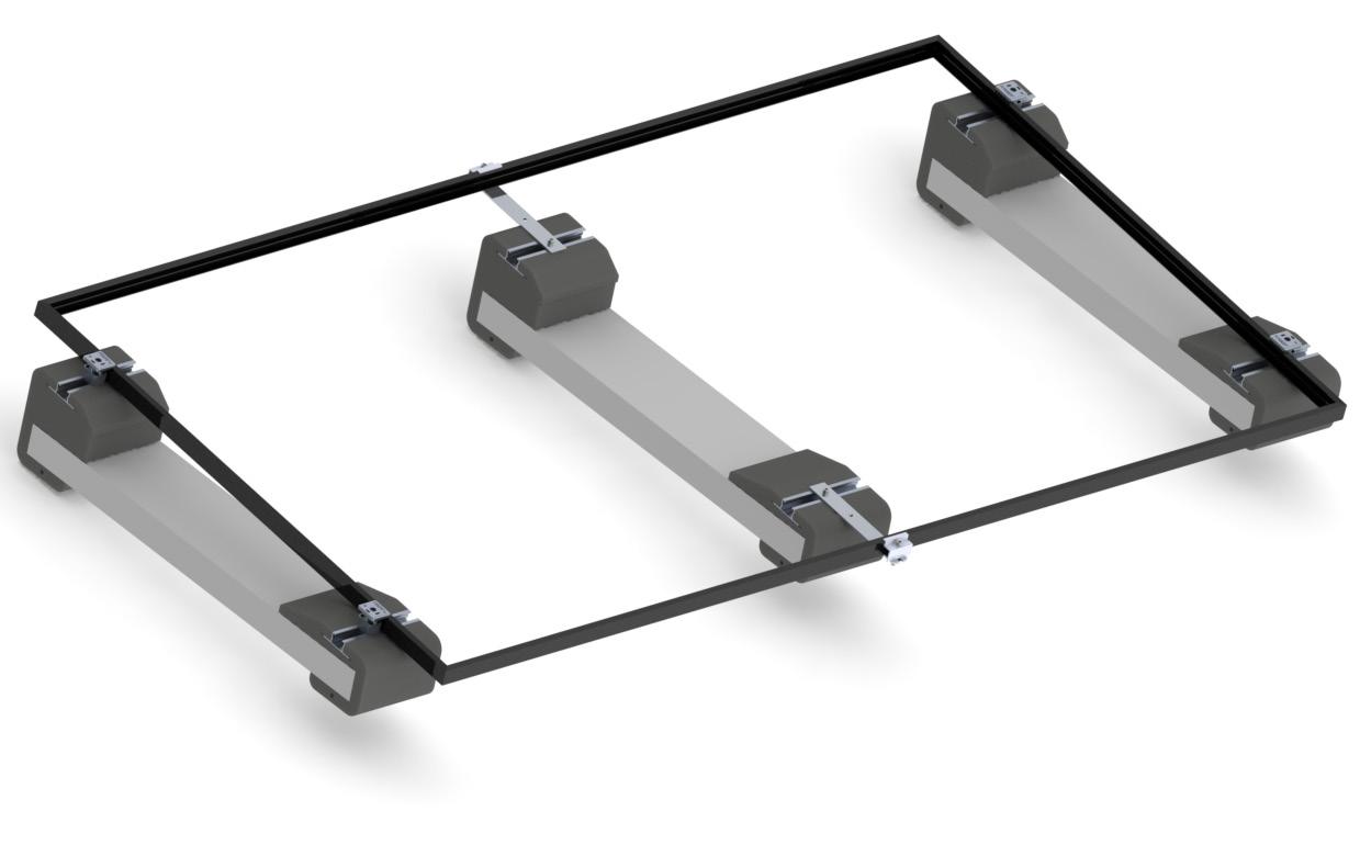 Para aumentar la estabilidad del sistema de soporte, hay disponibles lastres adicionales que se superponen en la parte central del soporte y, mediante dos orificios pasantes, situados en la parte delantera y trasera, se puede conectar un cinturón perimetral, compuesto por perfiles y soportes, que, unidos entre sí, garantizan una mayor resistencia a la fuerza del viento.