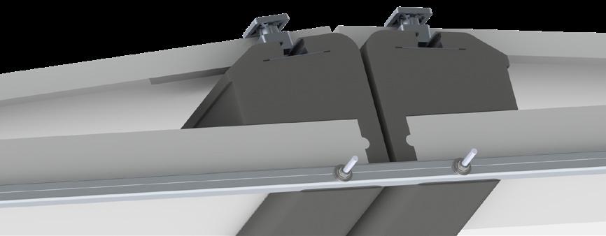 MPU-P2545 es un dispositivo que permite fijar los paneles fotovoltaicos a los perfiles del soporte. Compuesto por dos elementos: la base y el cabezal, el dispositivo se puede configurar para utilizarse tanto como abrazadera CENTRAL como T E RMINAL, girando el cabezal. La abrazadera de la base está equipada con un elemento en T que permite fijarla al perfil, mientras que un tornillo pasante entre la base y el cabezal permite adaptar la abrazadera, ejercida por el cabezal, al grosor del módulo fotovoltaico, qu e puede variar entre 25 y 45 mm.