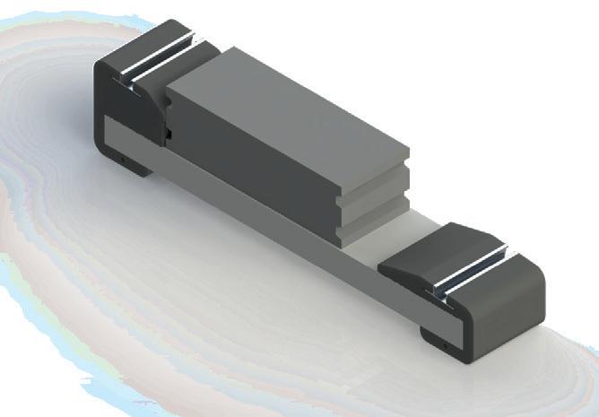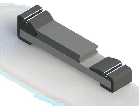 Soporte lastrado ecológico compuesto por una base de cemento envuelto en sus extremos por carcasas de caucho reciclado.