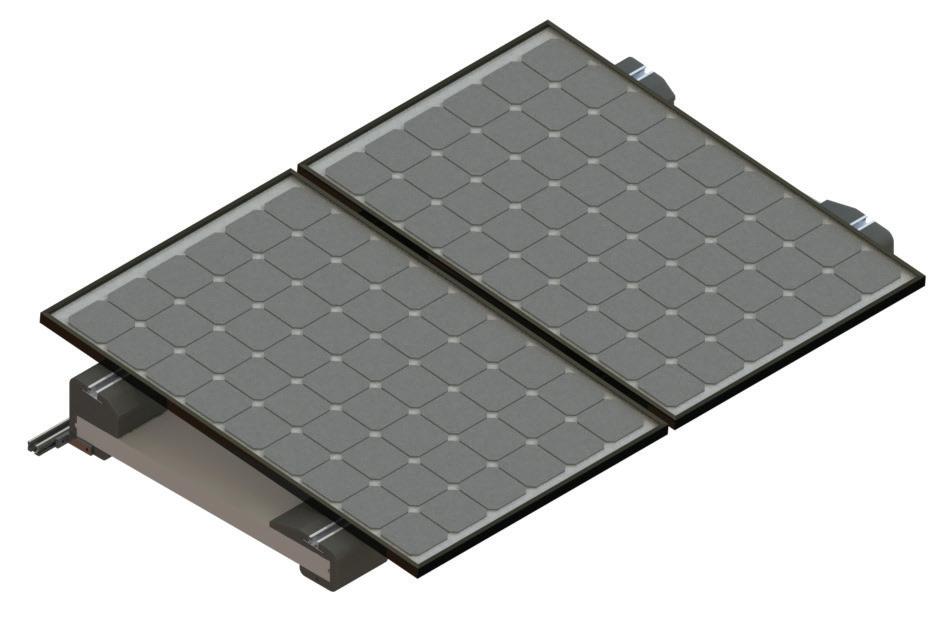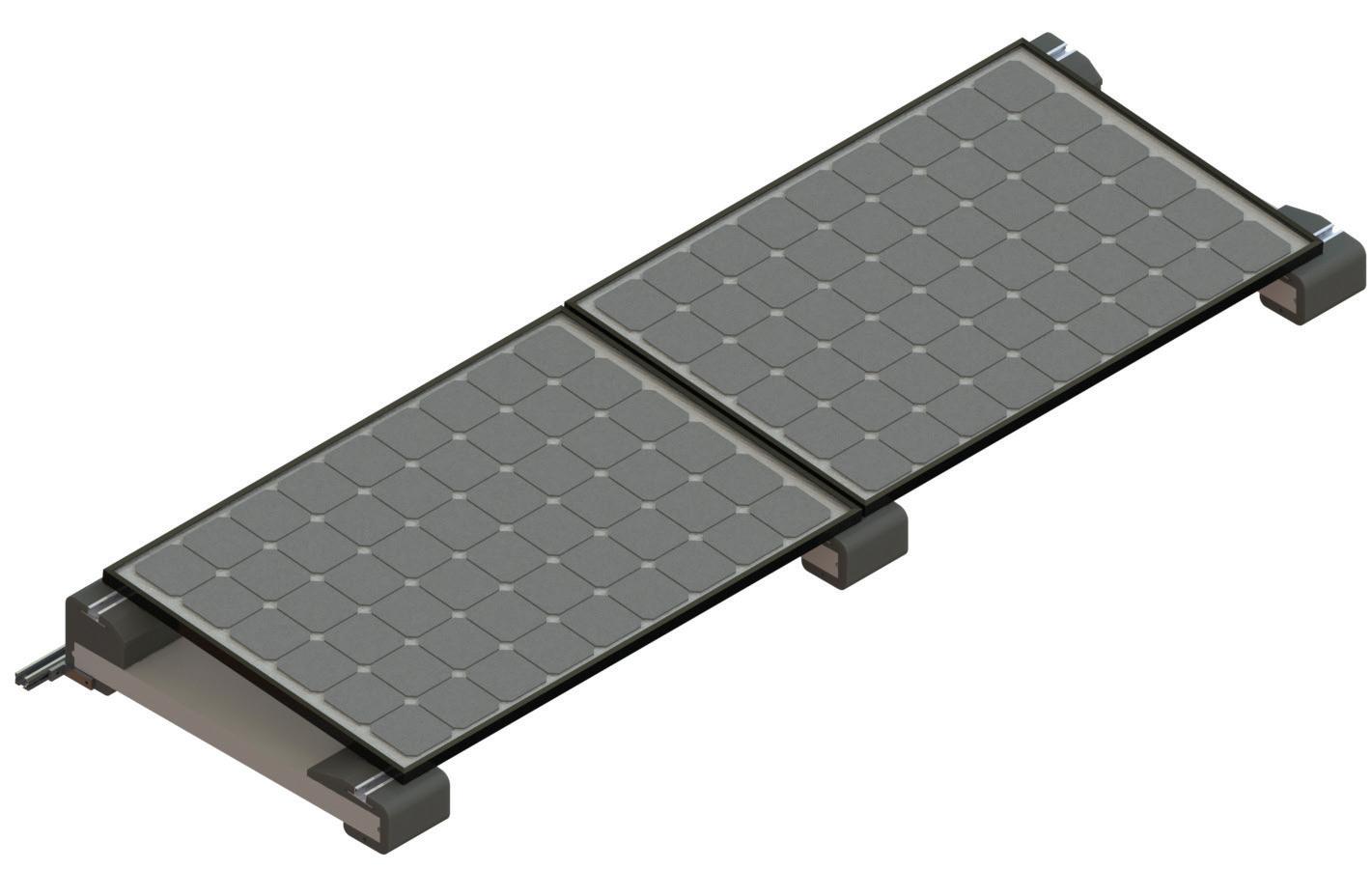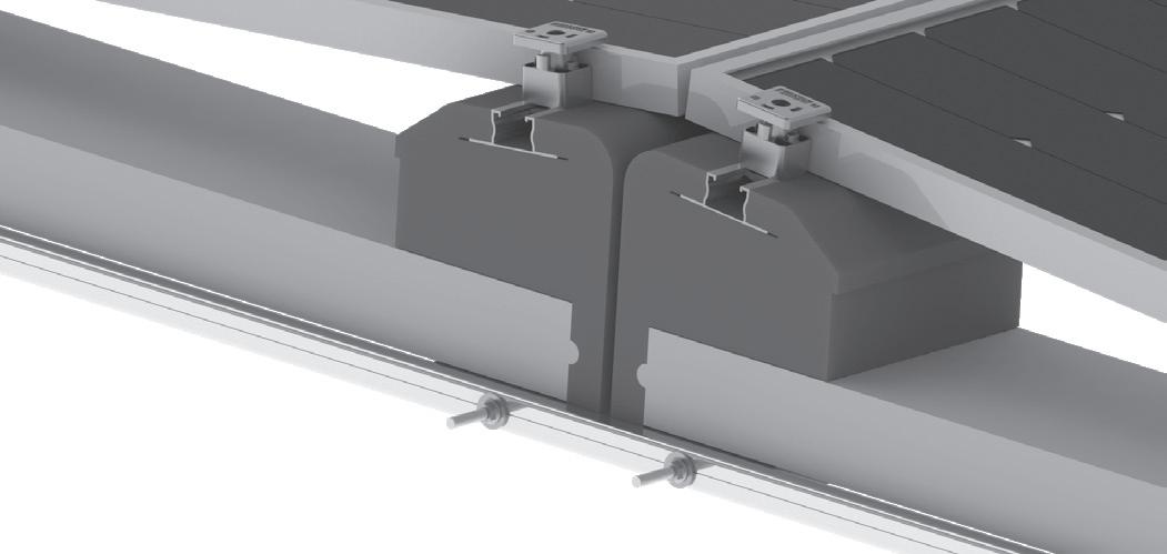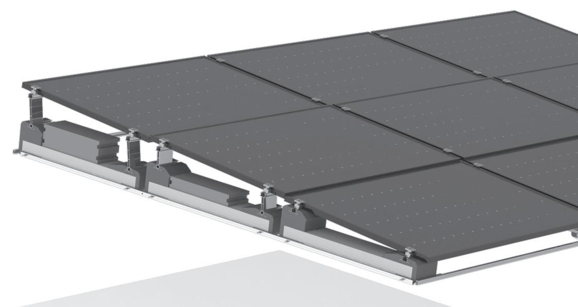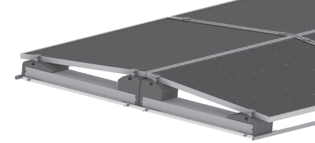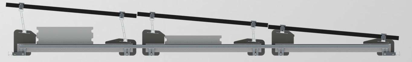Disposición de paneles BIG SIZE* en horizontal, inclinación 5º, con lastre y soportes intermedios