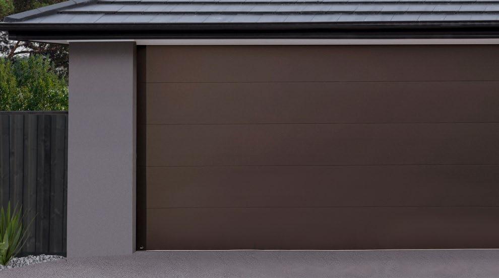 Elevate your facade with a contemporary 2400mm Colourgrain Timber Look remotecontrolled sectional garage door.