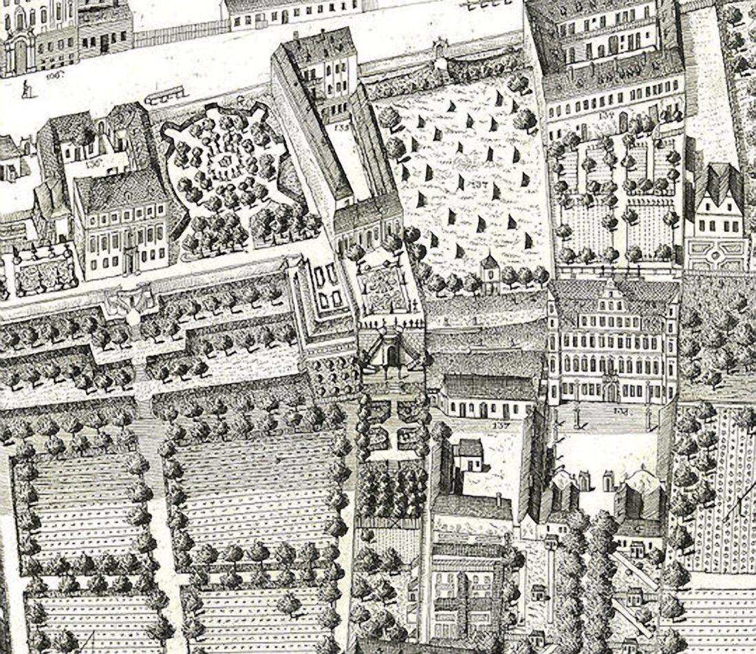 Detail of a Map of Vienna showing 135 Alsergrund where Mozart and his family lived during 1788 (etching & engraving). Artist Huber, Joseph Daniel (fl.c.1776). Christie’s Images / Bridgeman Images
