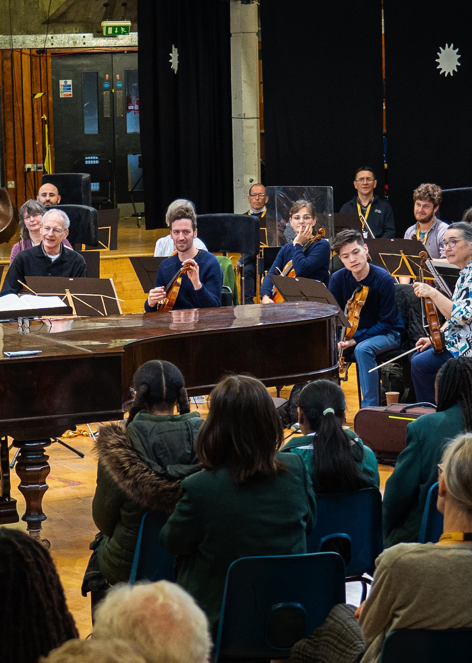 In January 2024 the OAE were joined on stage by performers from Camden and our national residencies, showcasing a diverse group of individuals with varying abilities united in the celebration of the collective power of music-making. We had dancers and musicians from Acland Burghley and Northgate secondary schools, a primary choir made up of students from three of our Camden partner primary schools and a community choir made up of singers from across the country and of course the OAE – 191 performers in all – an OAE record!
