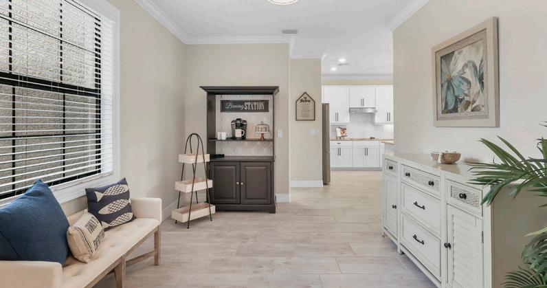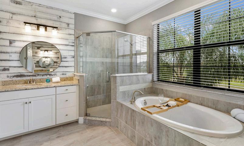 Introducing an exquisite 2-story National model home, showcasing elegance and tranquility. Set on a 1/3-acre private estate lot , this residence offers 3,464 sf of living space, ensuring ample room for family and guests. Neutral soothing tones and natural light illuminates this 5 bed/3 bath home, creating a warm and inviting ambience. Meticulously designed, it includes a convenient first-floor bedr oom and adjacent bathroom for comfort and accessibility. The interior boasts modern details such as crown molding, ceramic plank floori ng, a fireplace feature wall, and a graceful wooden staircase. The well-appointed kitchen features white cabinets, an oversized islan d with a farmhouse sink, upgraded SS appliances, tile backsplash, under cabinet lighting and a walk-in pantry. The outdoor living space offers a tranquil retreat, featuring a covered lanai and spa with a serene west-facing view overlooking a preserve. With ample room for customization, you can create your own outdoor oasis with a custom pool. The Place amenities include an indoor/outdoor restaurant/bar, cafe/barista bar, bourbon bar, fire pit, 11,000 square foot resor t pool, oversized spa, waterslide, splashpad, fitness center, tennis, pickleball, bocce ball, half-court basketball, and dog park. This is Resort Style living at its best!