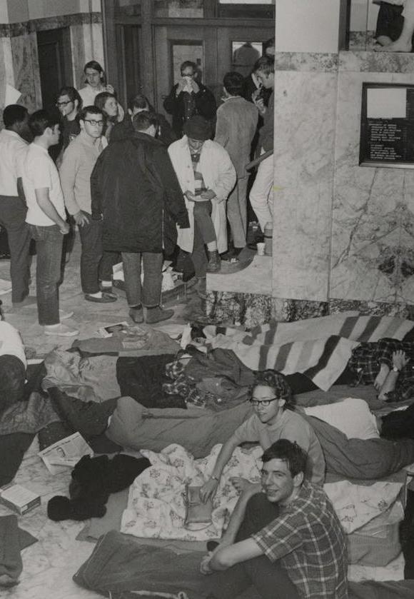 The conflicts culminated in April of 1968 with a “sleep-in” at Johnson Hall, the administrative heart. Fifty students held out for an astonishing three days, refusing to leave the hall until they were given equal representation on the Presidential Search Committee, which selects the university’s next president. On the third day of occupation, joint negotiations resulted in a deal to add 3 student representatives to the committee, a tremendous win for student power at the university, giving them a say over the organization’s future.