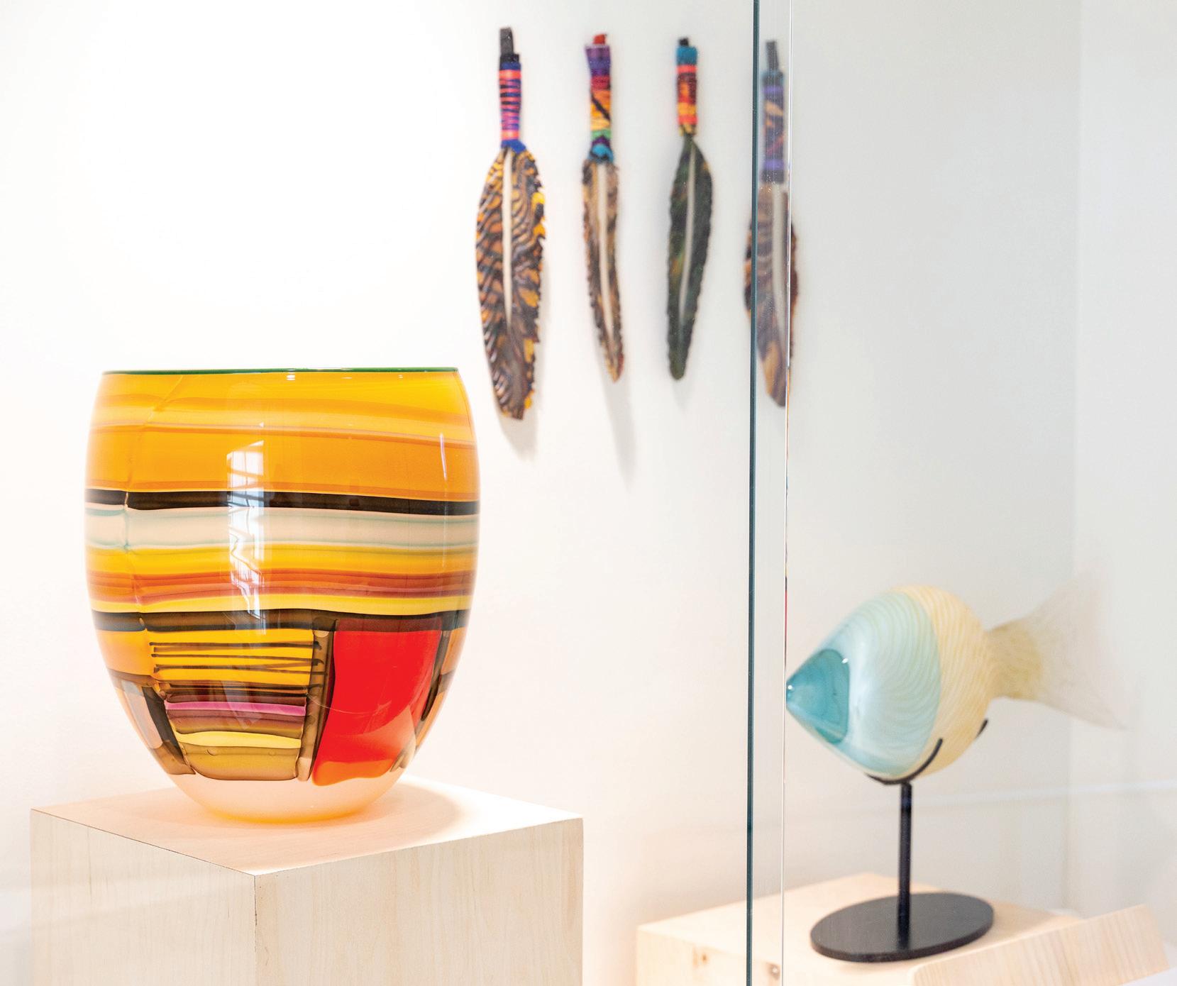 Friday’s glass works, most inspired by his Lummi Nation heritage, are currently being displayed in the Erb Memorial Union.