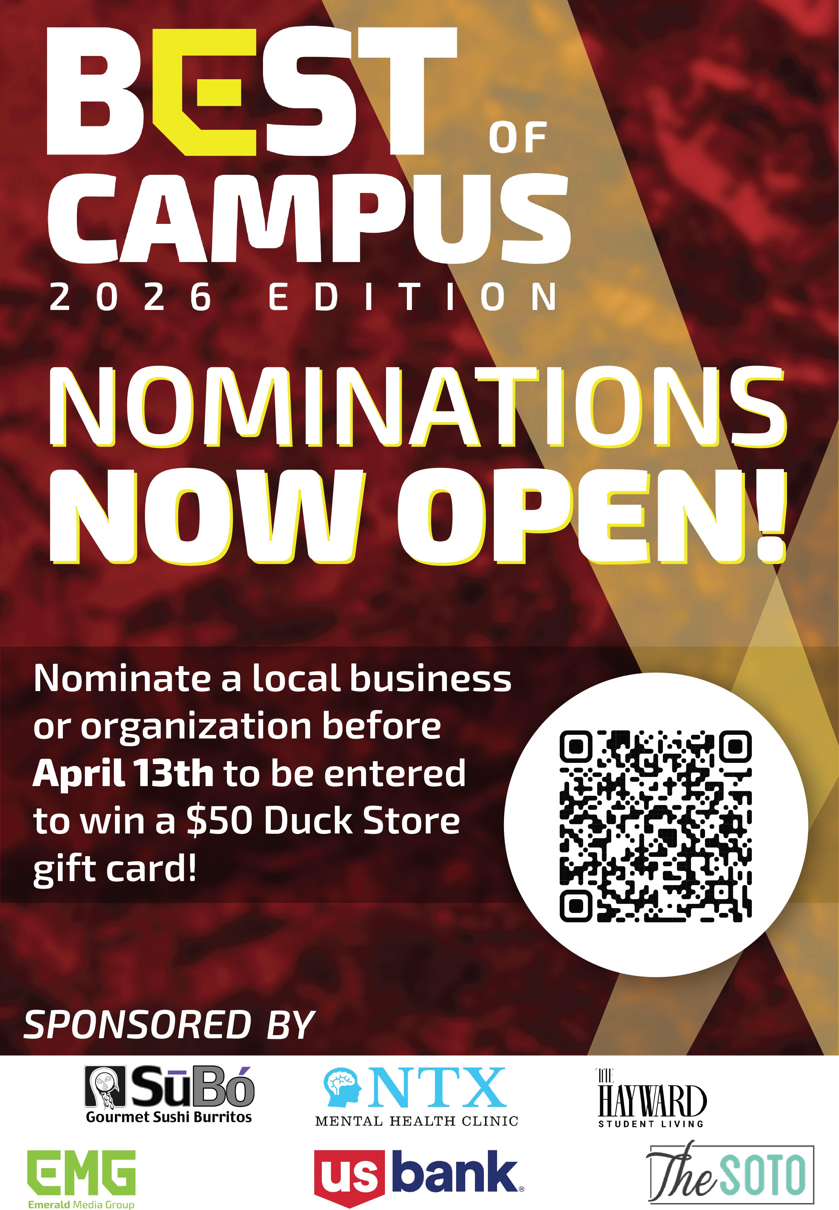 The Daily Emerald is published by Emerald Media Group, Inc., the independent nonprofit media company at the University of Oregon. Formerly the Oregon Daily Emerald, the news organization was founded in 1900. Emerald Media Group 1395 University St.,#302 Eugene, Or 97403 (541)-346-5511