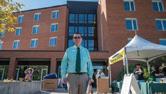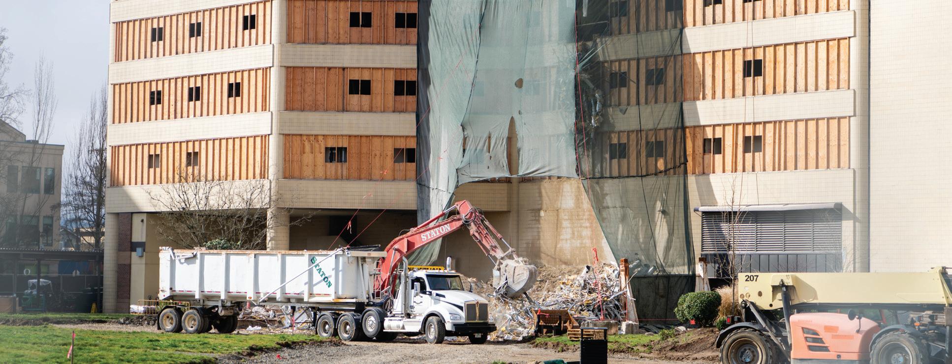 UO sophomore Jessica Brannan lives at the Westgate apartment complex on East 13th, across the street from the former PeaceHealth hospital demolition.
