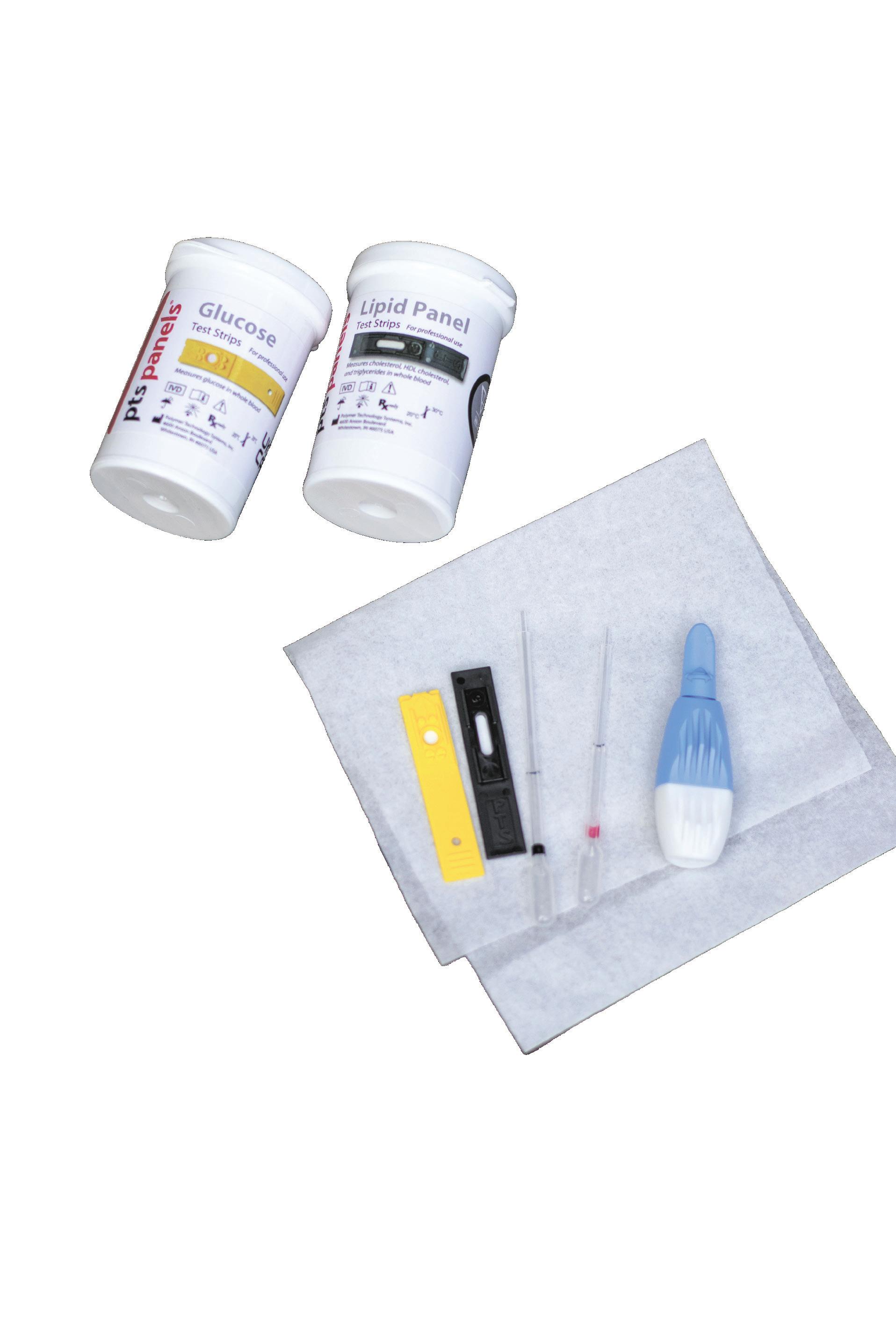 ( LEFT ) Researchers use test strips while giving health tests to collect the glucose and lipid panel levels of the participant. The test strips data that gets recorded goes towards gaining an understanding of their living conditions.