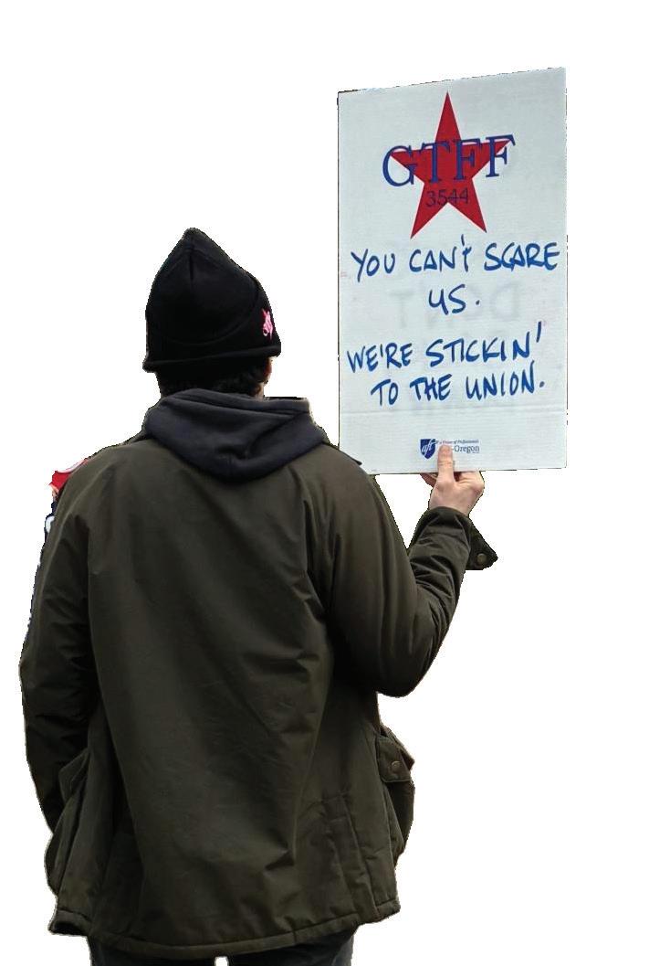 The bargaining session was preceded by a “kickoff” rally of about 60 people in the Erb Memorial Union Amphitheater where GTFF’s bargaining team was introduced and leaders from UO Stu-