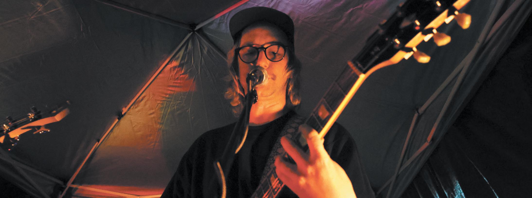 The only items supporting the tarp were a ladder positioned adjacent to the wooden porch that was repurposed as a stage and a basketball hoop wrapped with soft string lights. Shoes gradually sank in the dense mud that enveloped the area as everyone peeked at the three men on stage tuning their instruments. The biting cold nipped at our fingertips and noses — Eugene forecasted snow later in the night. Nevertheless, anticipation filled the air as everyone eagerly awaited the three men to debut their first performance together as Louise.