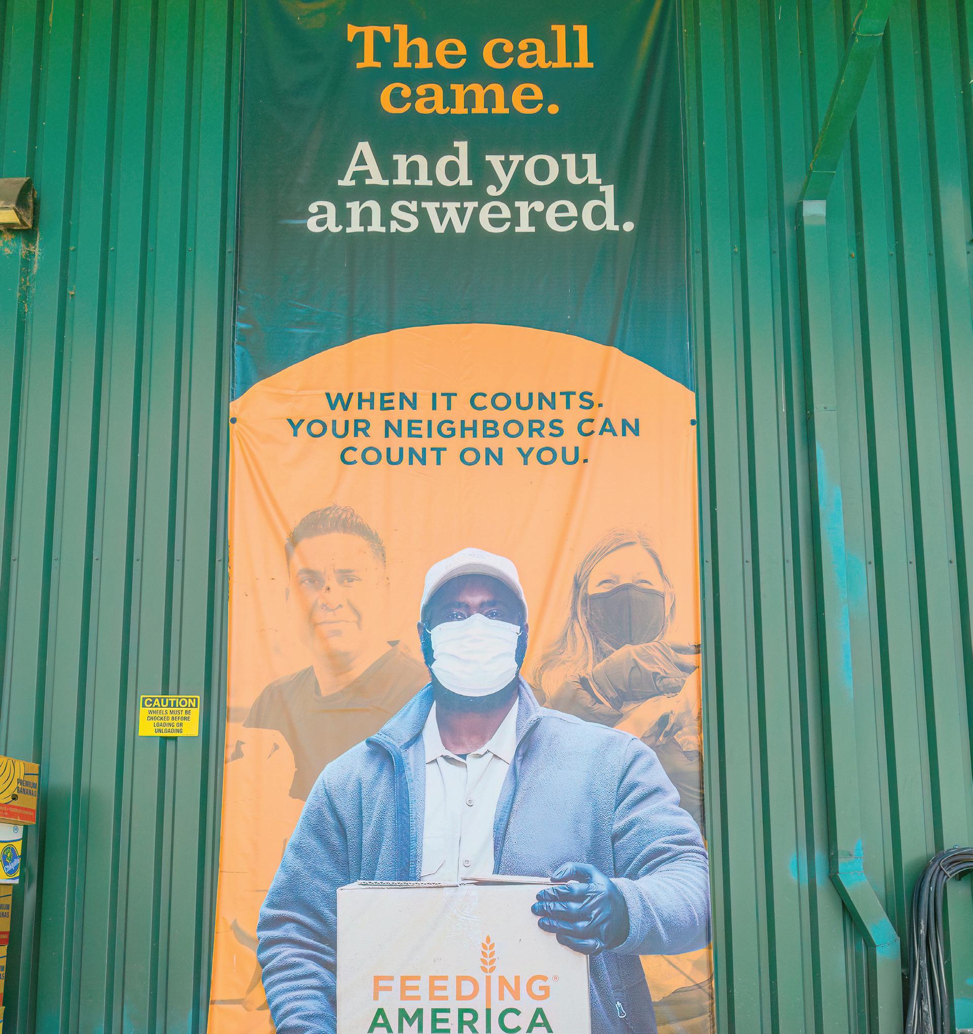 A Feeding America banner hangs outside of a Food for Lane County warehouse. (Eric Becker/Emerald)