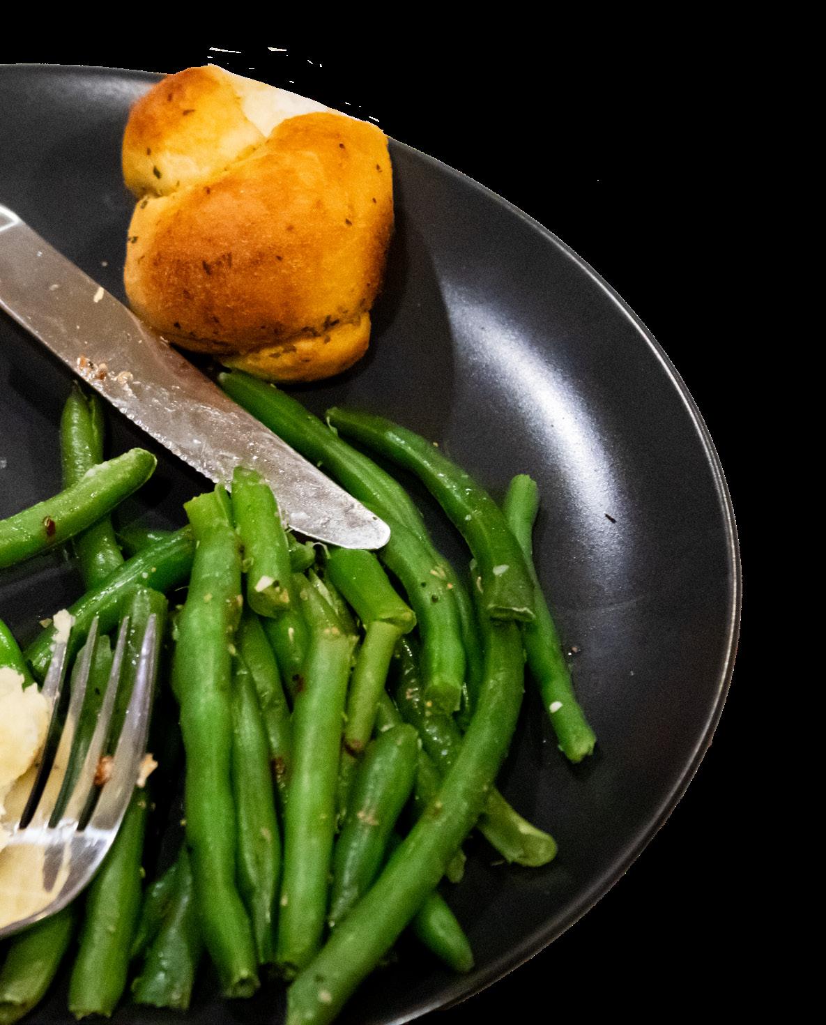 Don’t be afraid to get creative, the side dishes don’t need to be separated and live on different plates. Picture this: a beautifully crafted casserole with a base of stove top stuffing, canned green beans and corn, a layer of rotisserie chicken, topped with mashed potatoes from a pouch, and even a drizzle of store-brand cream of mushroom to elevate it if you’re feeling fancy. Another plus? Less dishes to clean!