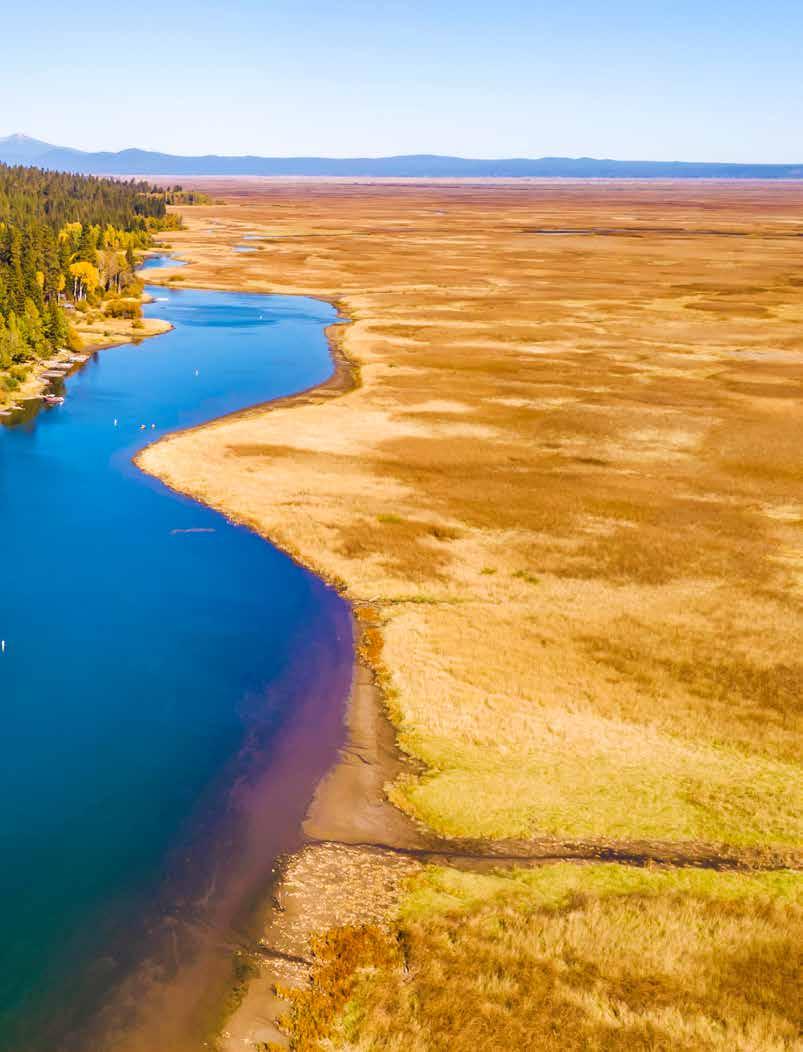 Located less than 30 miles from Crater Lake, Upper Klamath Lake is Oregon’s largest freshwater body. The shallow lake averages 14 feet in depth, with only a few areas exceeding 50 feet deep. The proximity to the nutrient-rich bottom and abundant fishery creates an appealing destination for dozens of aquatic bird species that nest locally or migrate through the fabled Pacific Flyway. More than 350 bird species have been identified in the greater Klamath Basin.