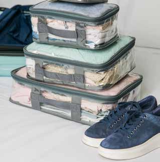 Packing cubes are a great resource for staying organized while traveling, and allow you to keep tops, bottoms and undergarments neatly packed away.