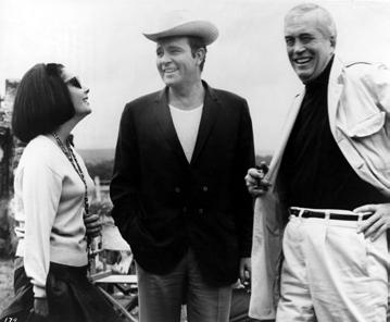 Elizabeth Taylor, Richard Burton and John Huston on set of “The Night of the Iguana”