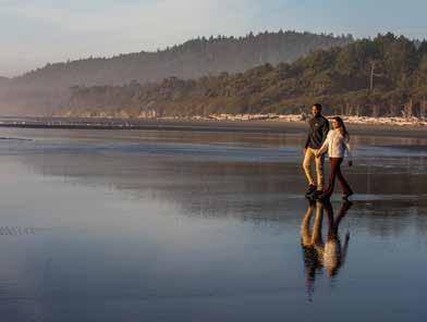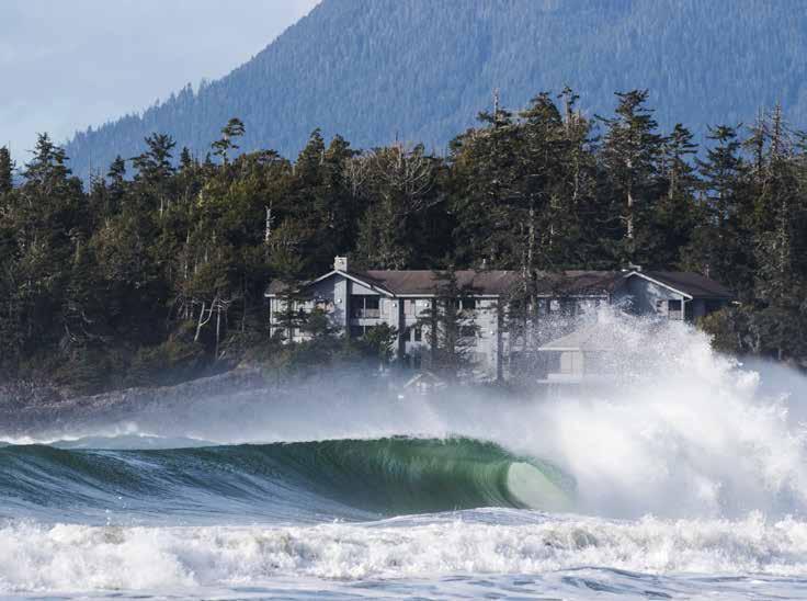 waves. Stay at the renowned Wickaninnish Inn, perched along Chesterman Beach with panoramic views, or at the Long Beach Lodge Resort on Cox Bay, a mecca for surfers and storm watchers alike. Sip on a warm cider surrounded in luxurious style as you watch the spectacle unfold outside, or bundle up in gum boots and a parka to witness it firsthand from the beach.