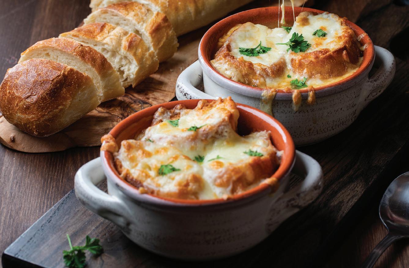 Savor crispy beerbattered halibut served with golden waffle fries, fresh coleslaw, and house-made tartar and cocktail sauces. Prime Rib French Onion SoupSecret Special Fish & Chips