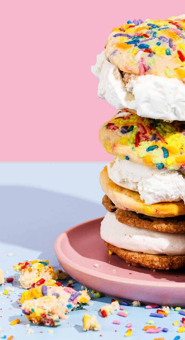 Note: If baking cookies from scratch, make sure they’re completely cool. Play around with different combinations of cookies and ice cream. Chocolate chip cookies with vanilla bean ice cream make the classic sandwich, but snickerdoodles and Earl Grey ice cream or Funfetti cookies with coffee ice cream are the next-level delicious.