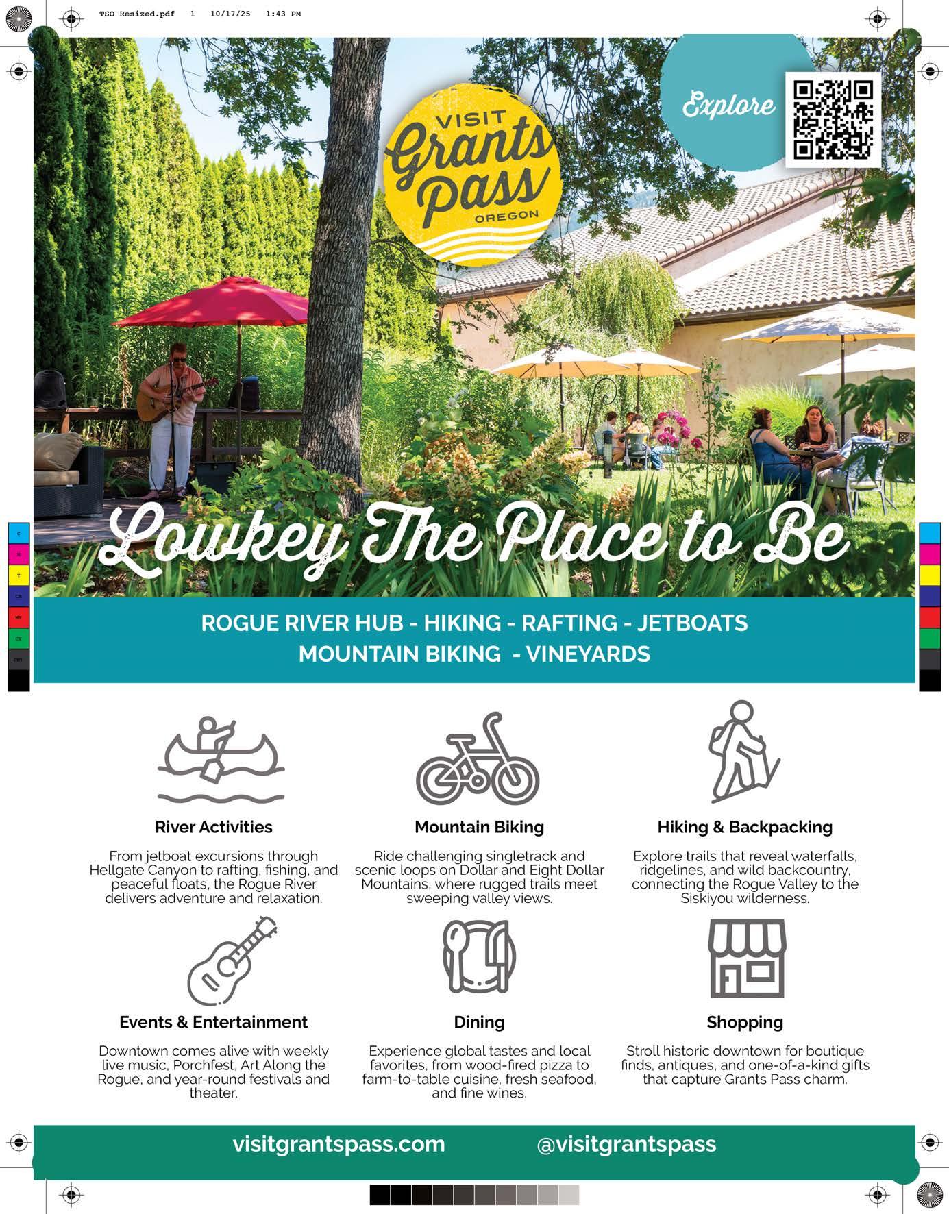 About Travel Southern Oregon: The 2026 Travel Southern Oregon Guide is the annual publication of Travel Southern Oregon (TSO). For more information about TSO or to become a member, please visit us at southernoregon.org or call 541-708-1994.