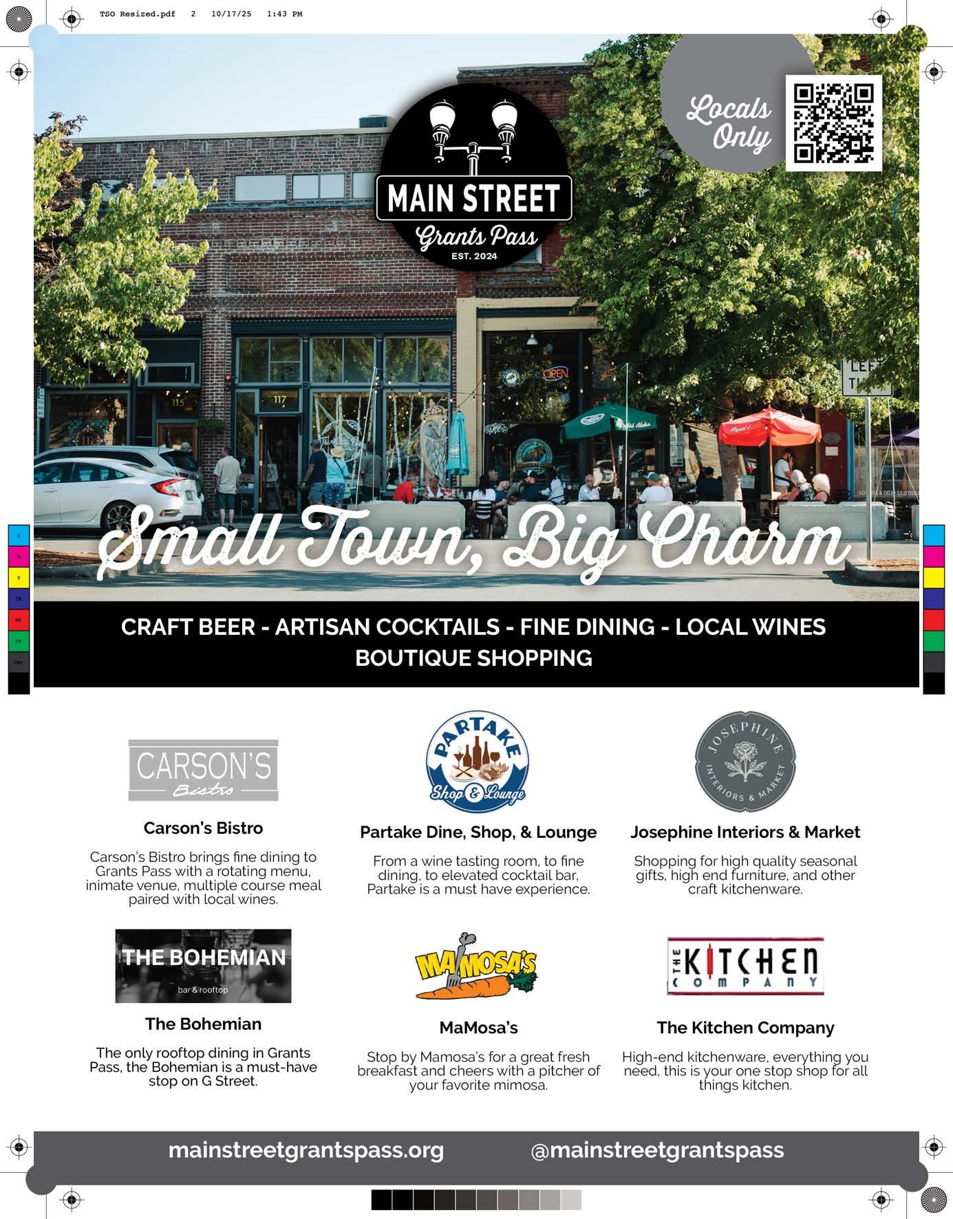 No need for research, your Southern Oregon guide will lead you in the right direction for anything local you may be looking for. Feel immersed in the community as you shop, dine and engage with the people who call this region home.