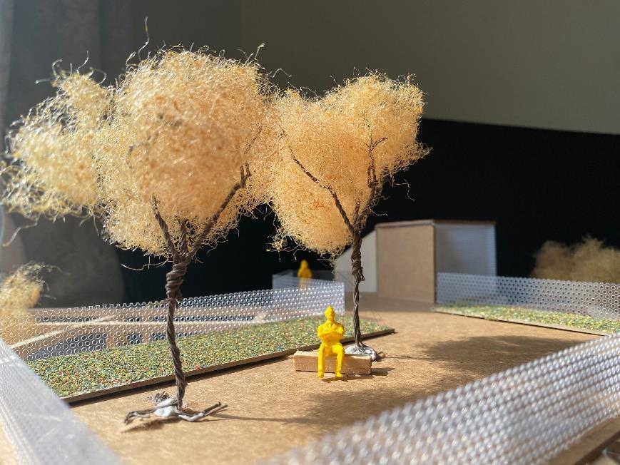 氣候變遷、城市環境所造成的熱島效應為目前都市主要議題。都市中出現許多的 『 造山運動 』 、 『 垂直森林 』 等空間型態,如何詮釋 『 城市山水 』 ,是由一連串觀察、解構、重組的發展過程。本題目將 『 水墨畫作 』 中之種種觀察與分析為操作主軸。在水墨畫中有許多不同 主題意境的空間序列。本次操作選定以 「聲」 (擬聲、擬態)、 「光」( 虚實 、明暗) 為空間發展主軸。 • 「聲」(擬聲、擬態) PARAPARA( 稀稀落落 ) 、 TSUNTSUN( 刺刺 ) 、 GURUGURU( 咕嚕咕嚕 ) • 「光」(虚實、明暗) • 輕重、動静、快慢、深淺 ............ 本題目藉由嘗試轉化水墨畫作空間意境及構圖意涵成為一具有光影變化、擬聲、擬態感覺之路徑或是光容器,完成空間須具有體驗性建 築之空間特質或光影效果, 並 藉由情境式比擬轉譯文字或語言成為空間序列。研究材料本質,以實構實驗的方式 ( 如堆叠、彎折、并置 ...... 等 方式 ) ,形構出一具有深度或體量的「新空間」:具有主題氛圍、叙事特質的 [ 光場 ] 或 [ 聲域 ] 。 06