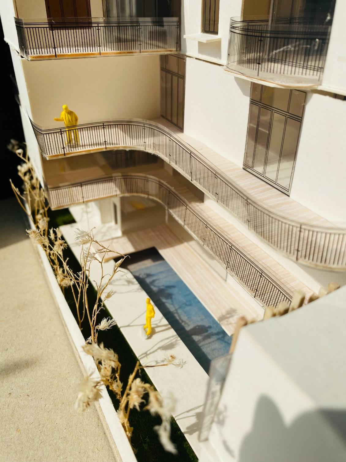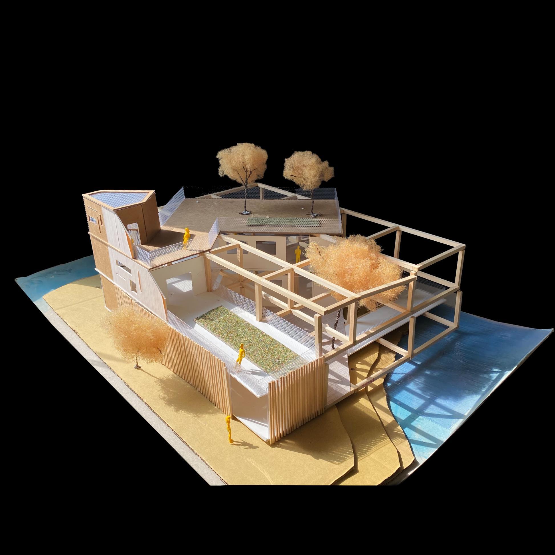 『 後疫情時代住宅設計 』 成為現今建築人的重要課題。 ▉ 題目説明: 『 城市住宅 』 本設計基地位於城市 內 一隅,業主含三個獨立居住單元(父母、長子一家、次子夫妻),試申論 『 城市住宅 』 , 並 自行 決 定三獨立居住 單元之空間組織,嘗試藉量體或串連的暗示與隱喻手法,各擁私密性又具有共同核心關係, 並 構成家、親情向心凝聚的自然不做作手法,試 圖創造「城市中的一隅绿洲」。