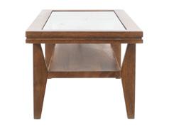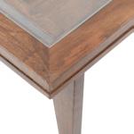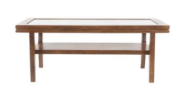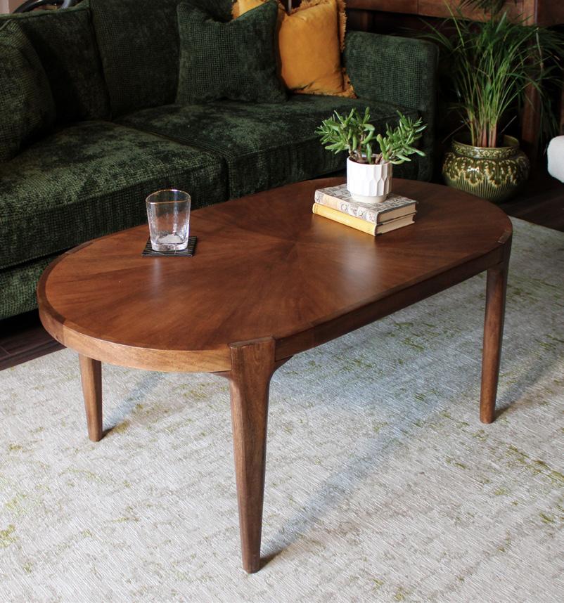 Intricately made coffee table with unusual sunburst design and fitted legs. Lighter wood patina stain.