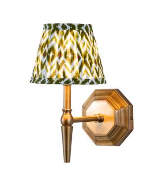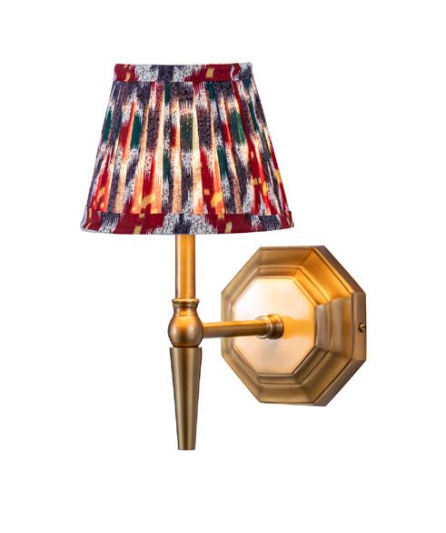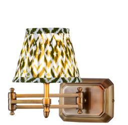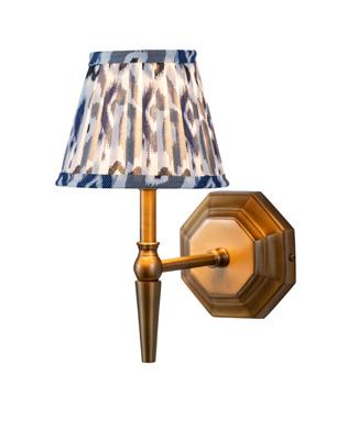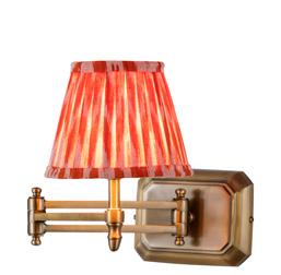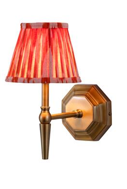 Antique brass finish wall fitting with single fixed arm and octagonal plate. Option to plug in or wire in directly with brass cover plate included. Available in 4 colourways.