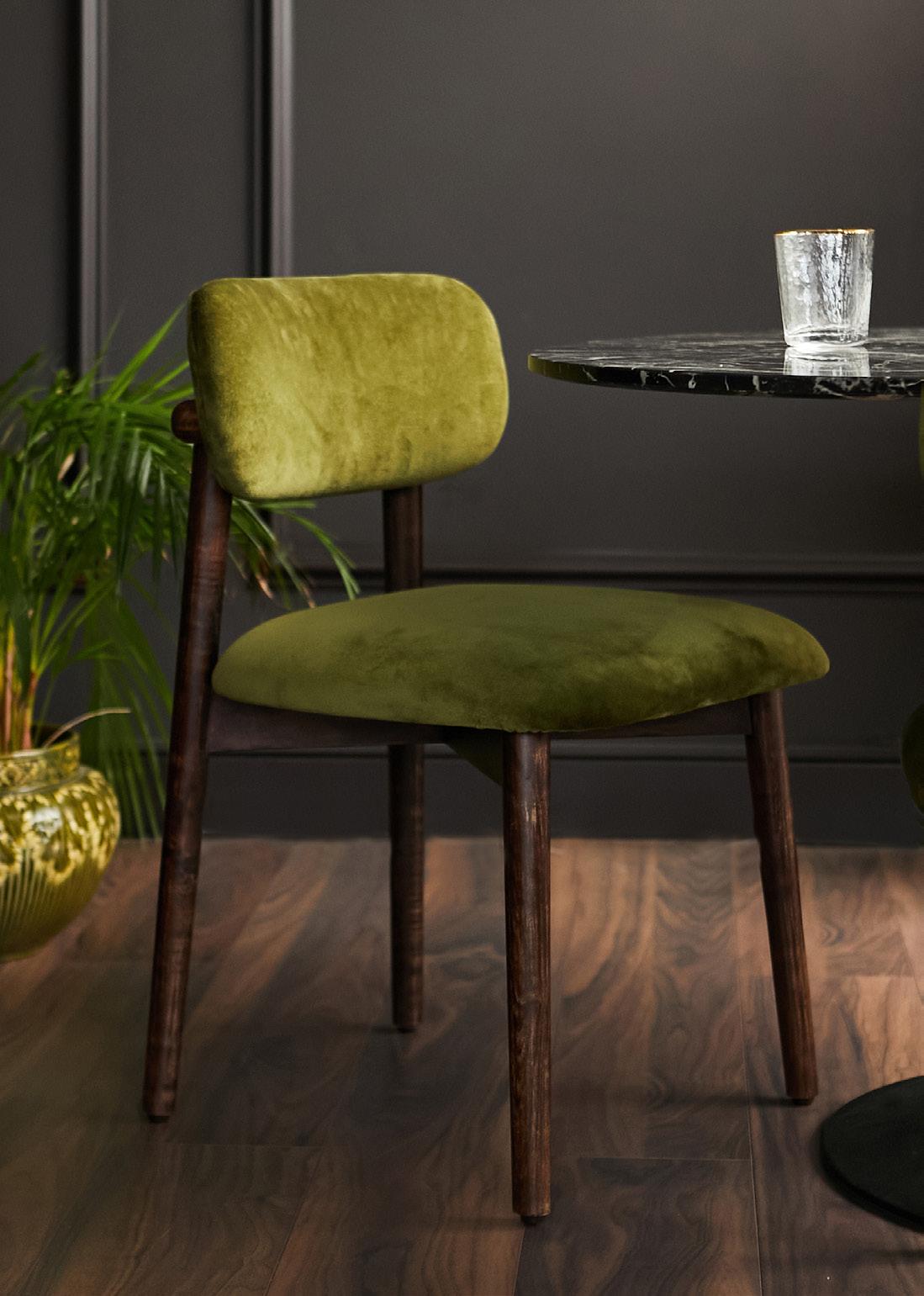 The two styles of dining chair were developed with comfort in mind. The green velvet dining chair is a well padded and comfortable take on a classic mid century shape yet with the added benefit of a crossed seat support which gives this chair extra wow factor. This chair is especially good when paired with round or oval dining chairs as the curve of the back flows with the table curves. The black and linen dining chair is much more redolent of the 1970s with a wide and generous seat and paired back detailing that will work with any colour of wood giving excellent flexibility for pairing with existing dining tables.