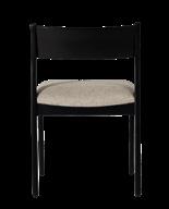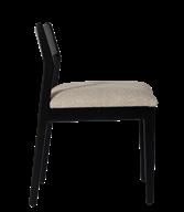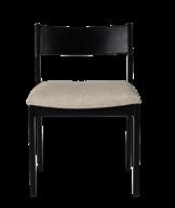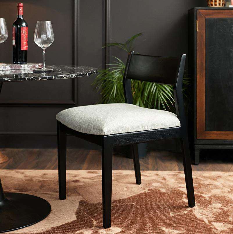 Broad and generous dining chair with stylish matt black frame and neutral padded linen seat. Colourway of this chair makes it easy to pair with different wood shades of tables.