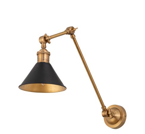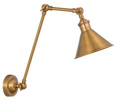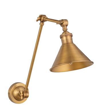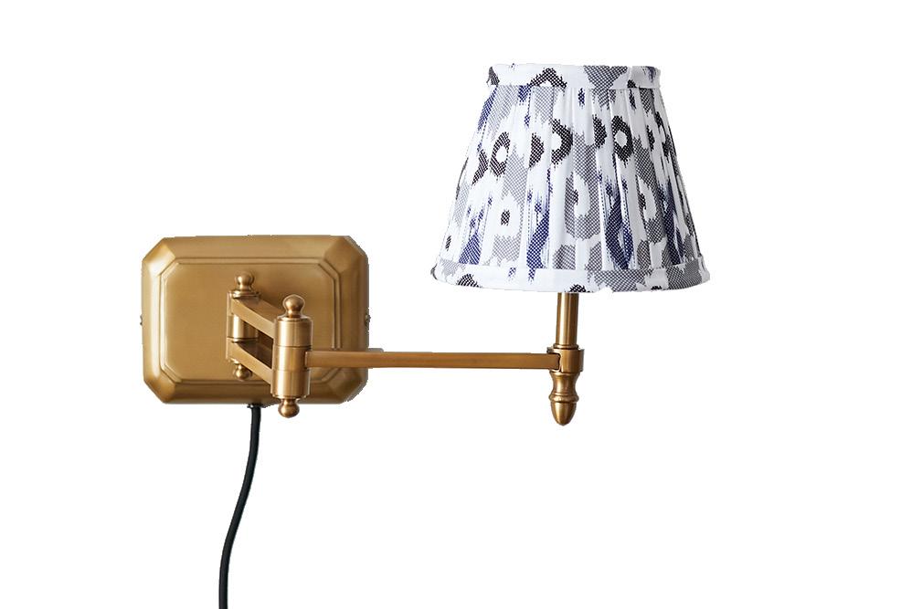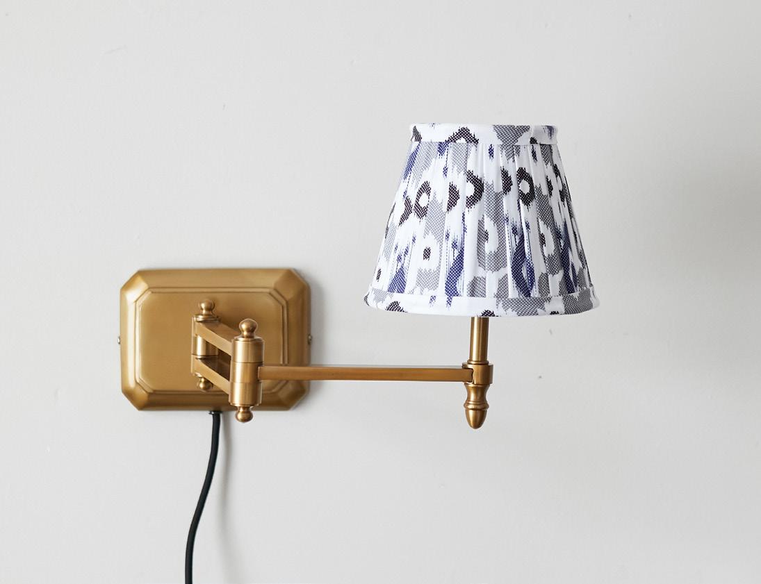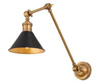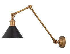 Antique brass finish wall fitting with extendable arm and rectangular plate. Option to plug in or wire in directly with brass cover plate included. Available in 4 colourways.