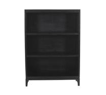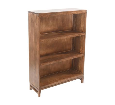 The wooden bookshelf lamp has a wood base that sits on the bookshelf, a black light fitting and a neat white shade.