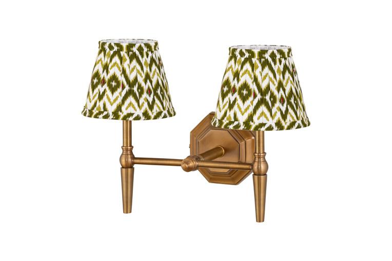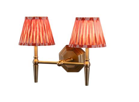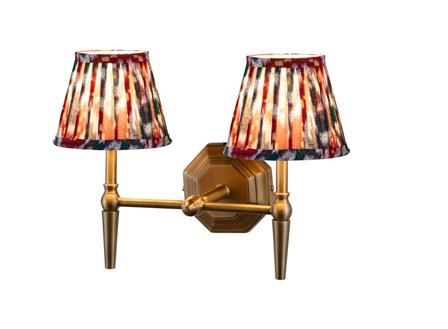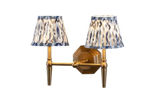 Antique brass finish wall fitting with double fixed arm and octagonal plate. Option to plug in or wire in directly with brass cover plate included. Available in 4 colourways.