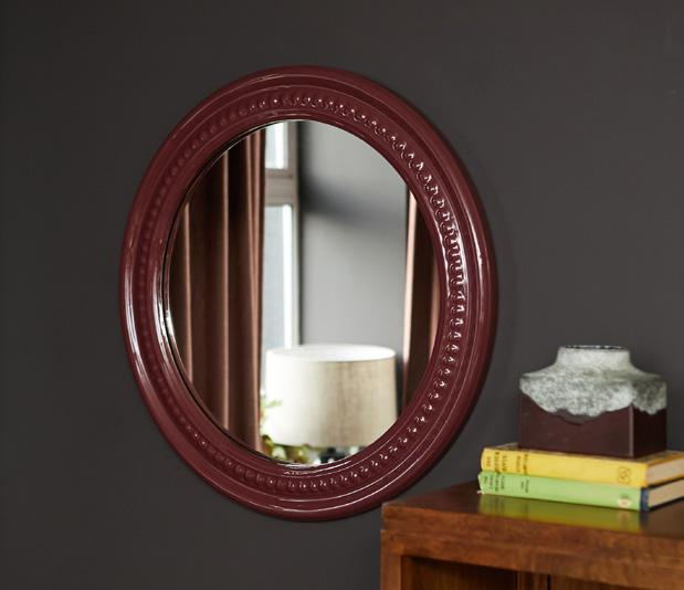 Pedestal table with twisted base in burgundy enamel finish. Perfect height for occasional use next to sofa or armchair.
