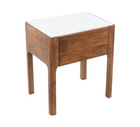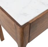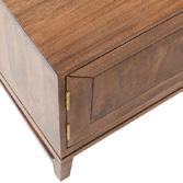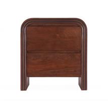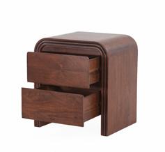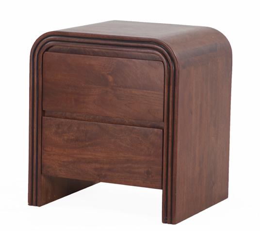 Two drawer bedside table with signature curved wood frame and fluting. Dark wood patina finish for a luxe invested look.