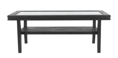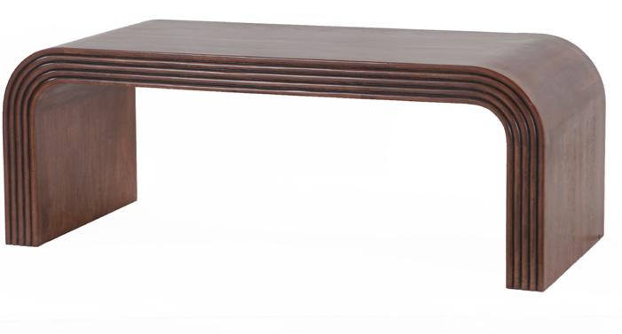 Large dark wood coffee table with curved continuous waterfall design and fluted edges for a restrained and handsome finish.