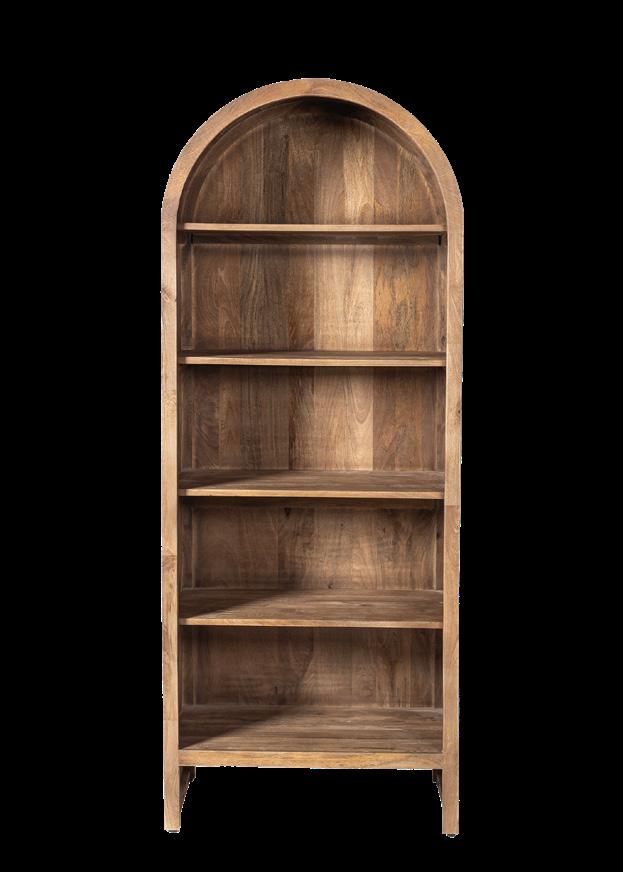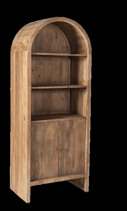Tall curved cabinet ideal for alcoves with five deep shelves maximise storage and display. Matching cabinet with cabinet allows for symmetrical pairing within a room. Finished in a lighter colour to ensure maximum functionality without dominating an interior scheme.