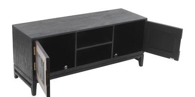 Highlights of the collection include luxurious Art Deco-inspired cabinetry like chic bedside storage, statement coffee tables, and television units coloured with a rich patina featuring curved line motifs.