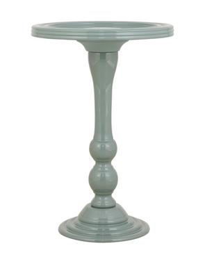 Pedestal table in sky blue enamel finish. Perfect height for occasional use next to sofa or armchair. Adds a pop of colour to any space.