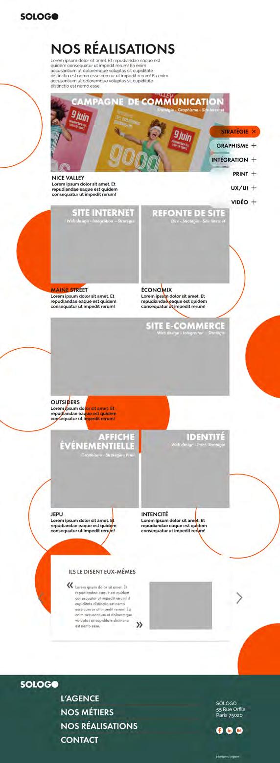 A suggestion of wireframes for the new website of SOLOGO, the communication agency I was working in.