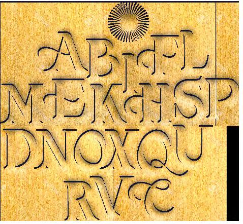 This creation symbolizes a point of harmony between soft, natural shapes such as curls in opposition to an Elzevirs-like inspiration, with its characteristic sharp serifs and straight lines.