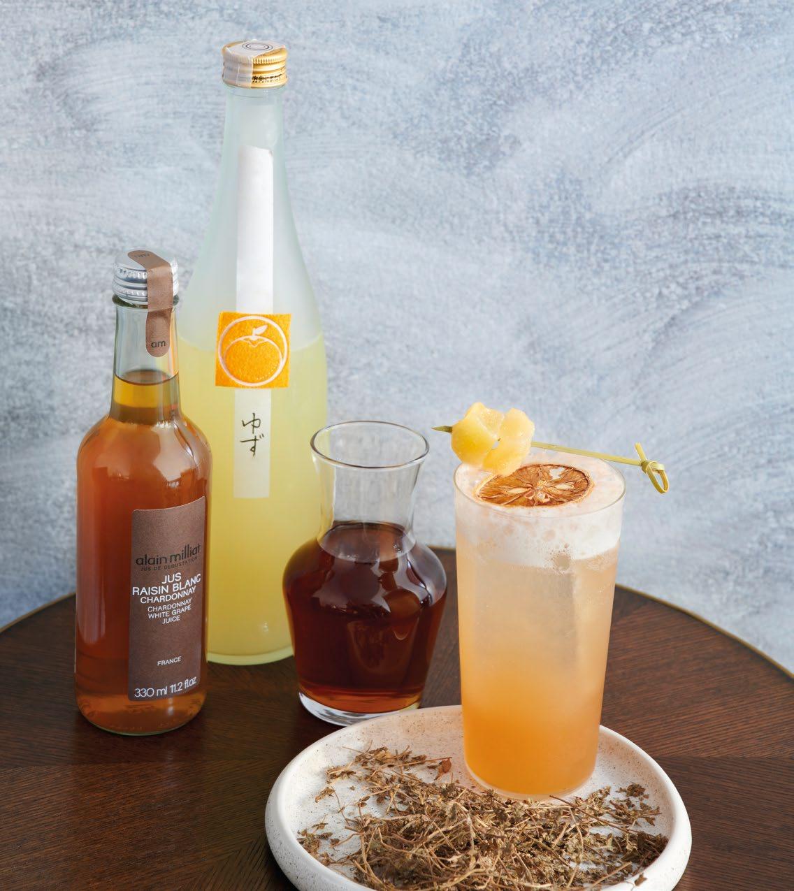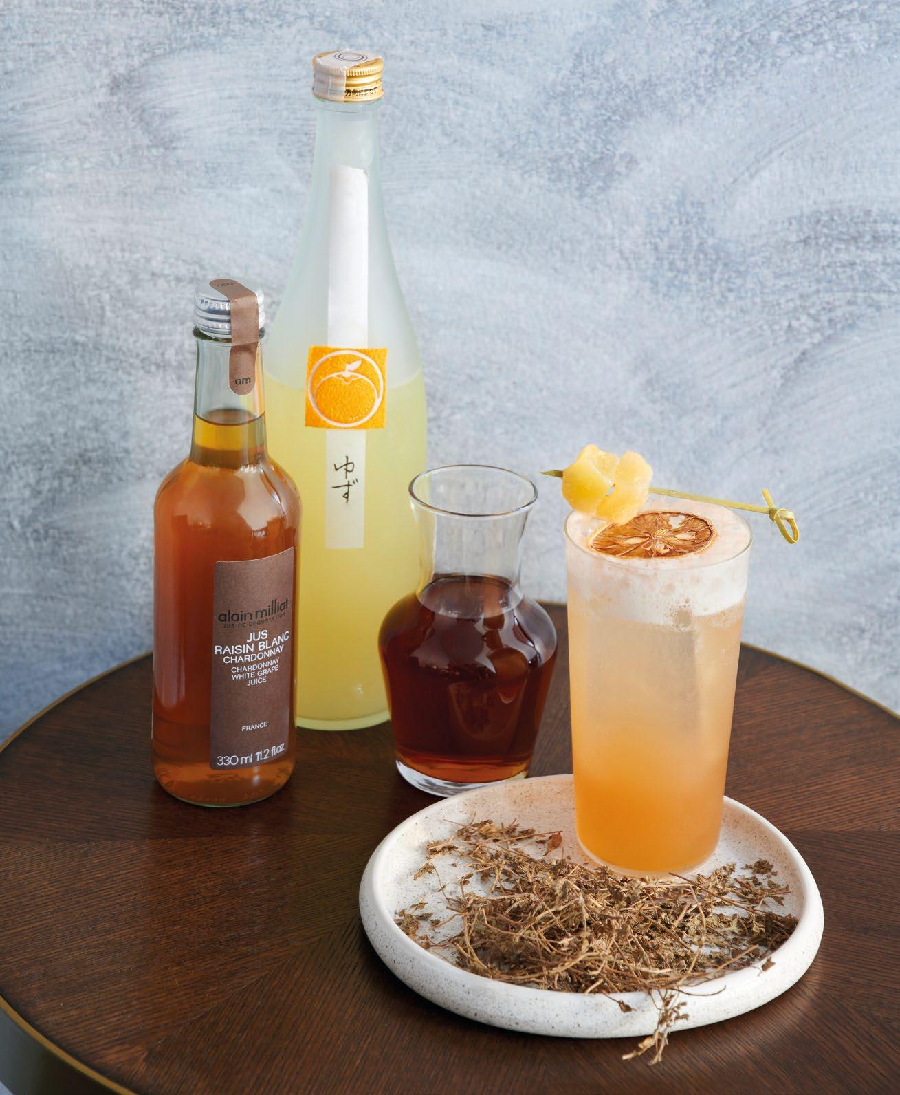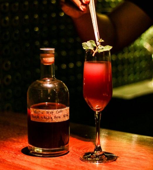 147 Head barman Y.S. Neo of The Lounge Bar infuses a ginbased highball with notes of wine grape for a refreshing hot weather guzzle