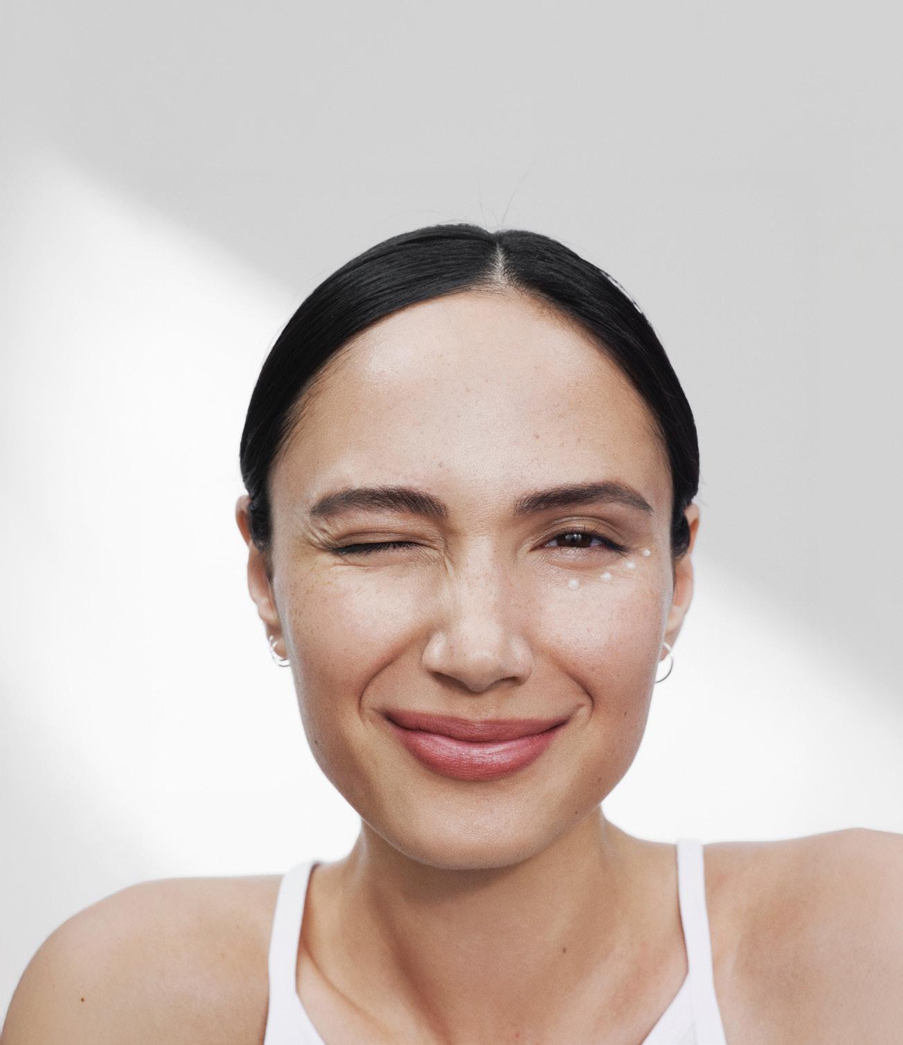Wrinkle Smooth sobre el hueso orbital y extiende suavemente con la yema del dedo. Evita el contacto directo con los ojos.