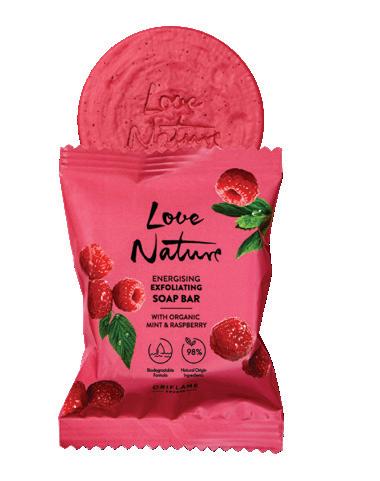 1 Jabón Exfoliante y Energizante en Barra con Menta y Frambuesa