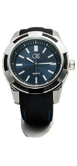 • Fondo gris que contrasta con las manecillas brillantes en forma de espada