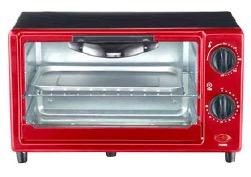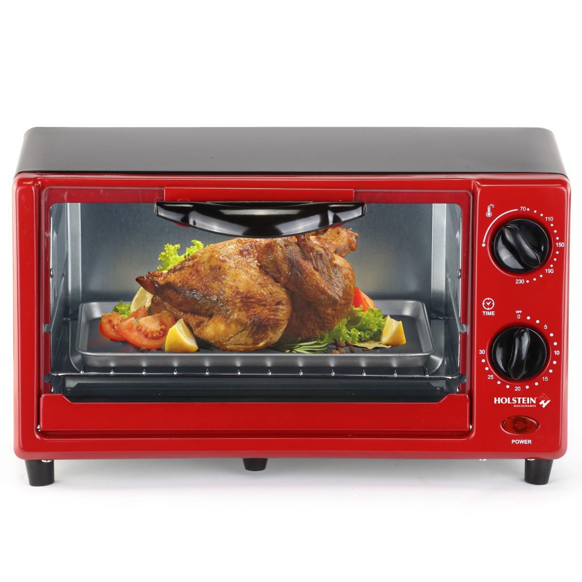 Capacidad para una pizza de 9” / Temporizador de 30 minutos con función de apagado automático / Control de temperatura ajustable de 70 a 230°C / Ventana de visualización para monitorear el proceso de cocción / Incluye estante y bandeja.
