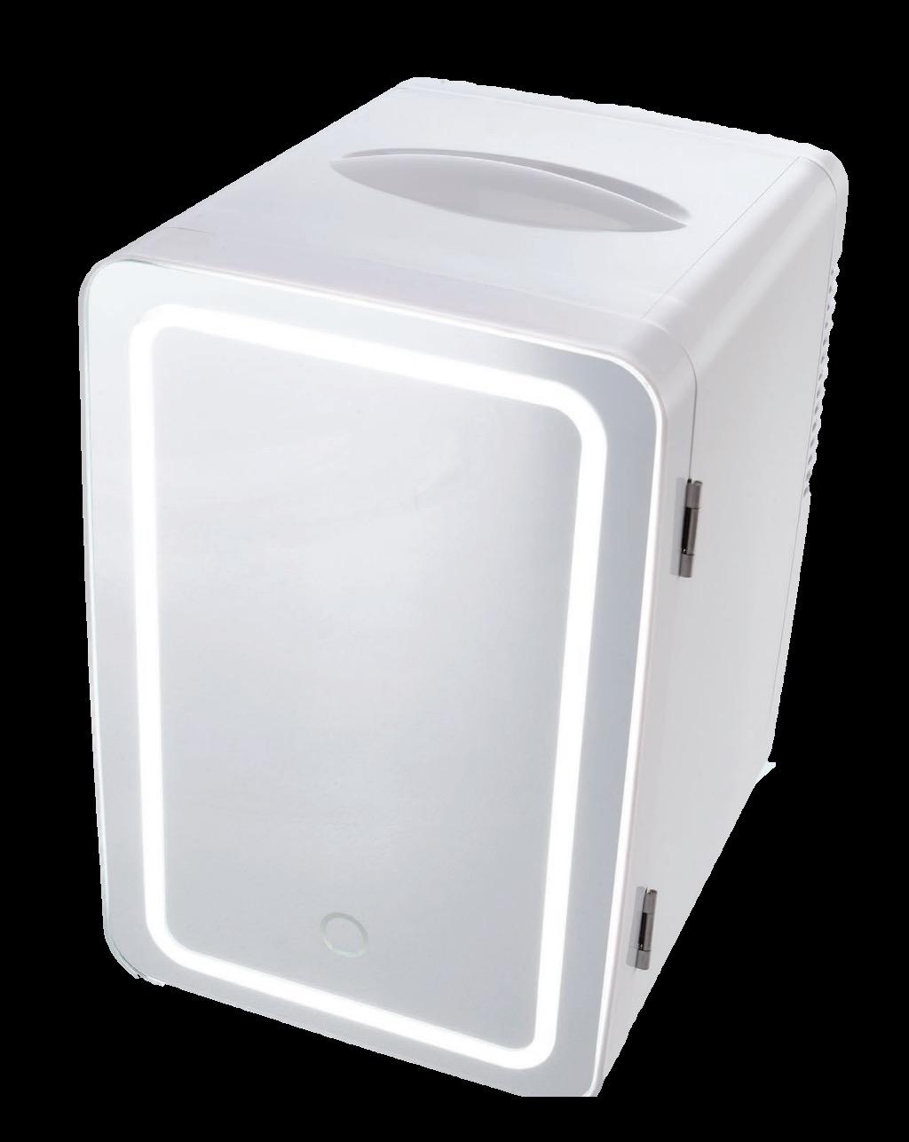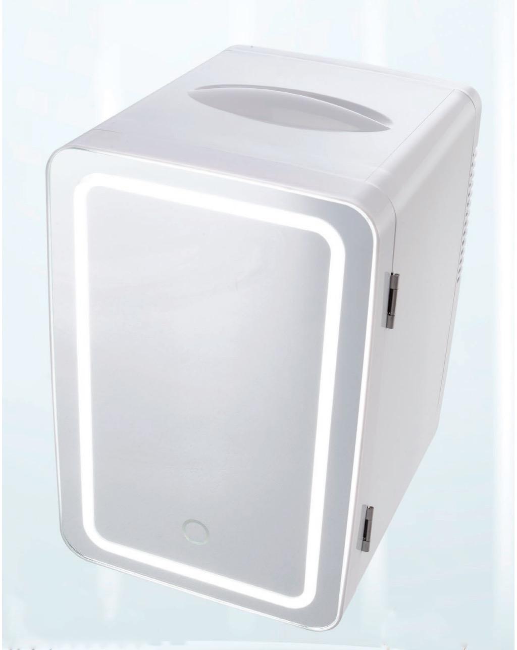 Capacidad de 6 litros / Puerta con espejo con luz LED / Sistema de enfriamiento de hasta 15 °C y caliente hasta 55 °C / Dualidad de Lujo, para bebidas, comidas, cremas y cosméticos / Medidas: 27 x 19.7 x 29 cm