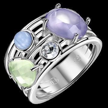 Anillo Icy Topaz Latón, cristales de circonia cúbica, vidrio, topacio blanco natural. Baño de rodio.